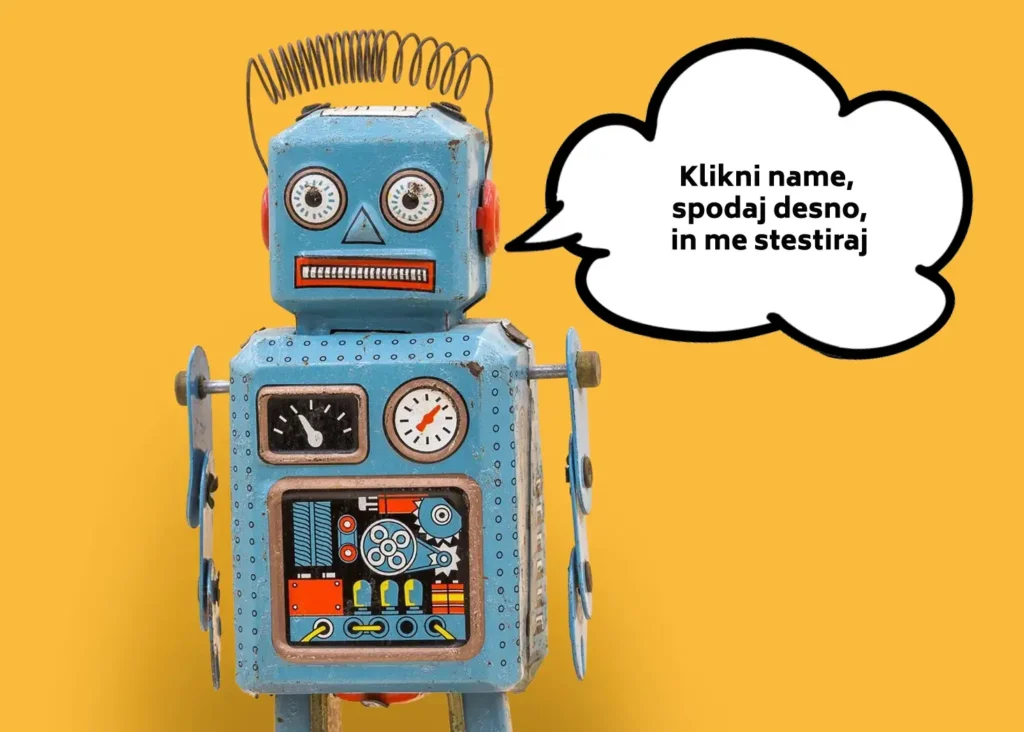 Če pa bi ga radi preizkusili oziroma vas zanima kaj iz naše kreativne ponudbe, ga kar kliknite spodaj v desnem kotu ekrana in mu zastavite kakšno vprašanje.