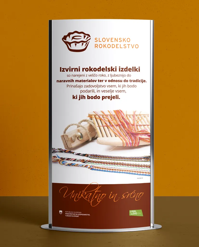Za potrebe projekta SLOVENSKO ROKODELSTVO pod okriljem Ministrstva za gospodarstvo, turizem in šport, smo idejno oblikovali in izdelali Celostno grafično podobo ter pripadajoče promocijske elemente. Osnovna grafična podoba izhaja iz slovenske potičnice, ki smo jo stilizirali in opremili s tekstovnim delom. Za namen projekta smo kreirali tudi slogan in ga grafično realizirali.